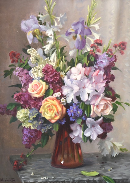 MARGARET PRESTON (1875-1963) Bottlebrush and Flannel Flowers 1951 oil on canvas