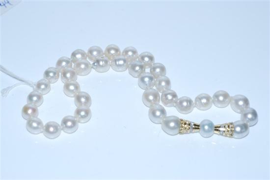 A SOUTH SEA PEARL CHOKER TO AN 18CT GOLD FANCY DIAMOND SET CONICAL CLASP.