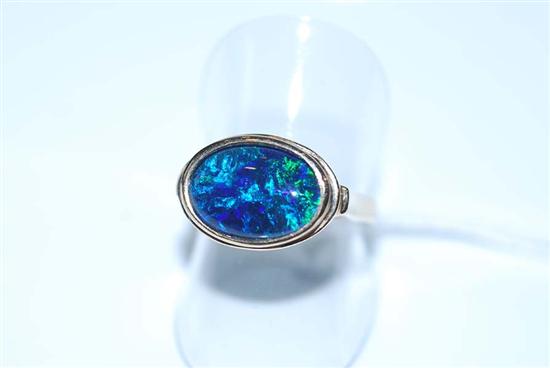 AN OPAL TRIPLET SET DRESS RING IN 9CT GOLD