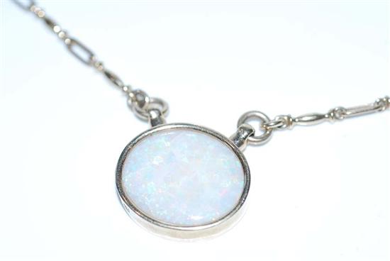 AN OPAL PENDANT ON FANCY LINK CHAIN IN 9CT GOLD