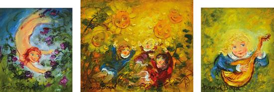 The Antipodean Childhood Series: Naked Figure and Violet Roses; Children and Sunflowers; Child Playing Lute 1994