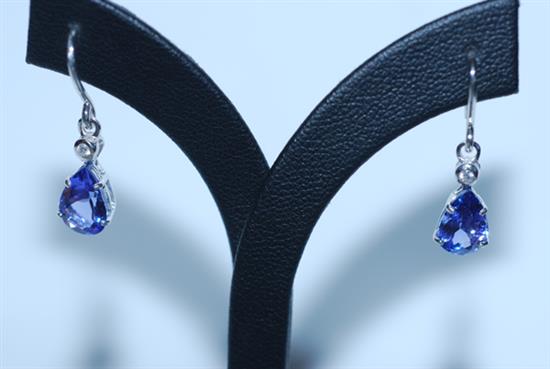 A PAIR OF TANZANITE AND DIAMOND EARRINGS IN 18CT WHITE GOLD