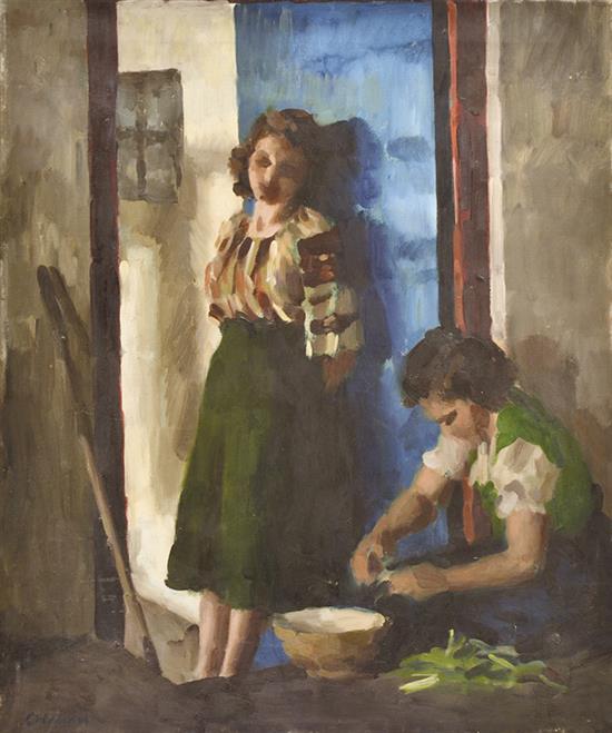 CHARLES BLACKMAN (BORN 1928) Schoolgirls circa 1960 oil on laminated paper
