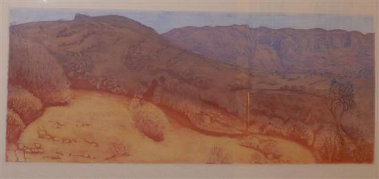 PRO HART, FIGURE BY THE LAKE, OIL ON PAPER, 19.5 X 49CM