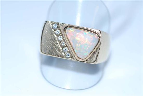 A GENTS OPAL AND DIAMOND SET SIGNET RING IN 9CT GOLD