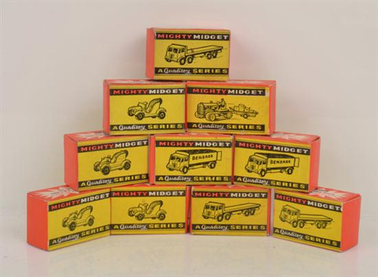 10 BENBROS MIGHTY MIDGET MODELS INCLUDING NO.19; 20; 20; 20; 23; 23; 26; 26; 26; AND 27 (VG-M BOXES G-E) (10)