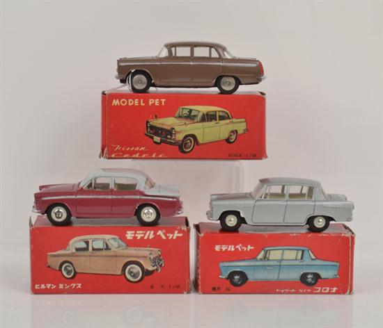 3 MODEL PET MODELS INCLUDING NO.7S NEW CORONA; NO.9 HILLMAN MINX; AND NO.10S NISSAN CEDRIC (E-M BOXES F-VG) (3)
