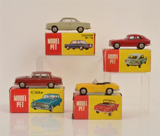4 MODEL PET MODELS INCLUDING NO.27 TOYOPET CORONA; 29 HINO CONTESSA COUPE; 34 HONDA S800; AND 35 HONDA S800 COUPE (E-M BOXES F-E) (4)