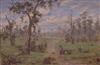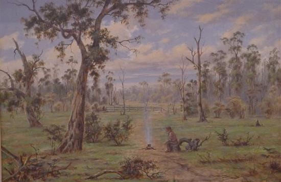 PRO HART, FIGURE BY THE LAKE, OIL ON PAPER, 19.5 X 49CM