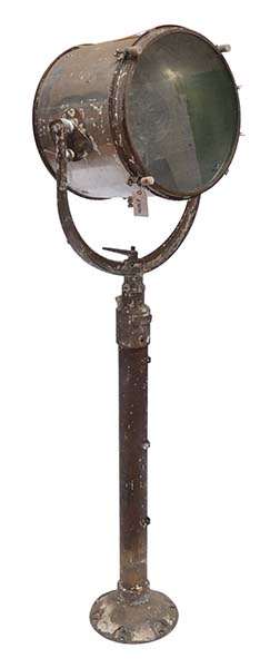 BRASS AND IRON SHIP'S LIGHT, 209CM HIGH
