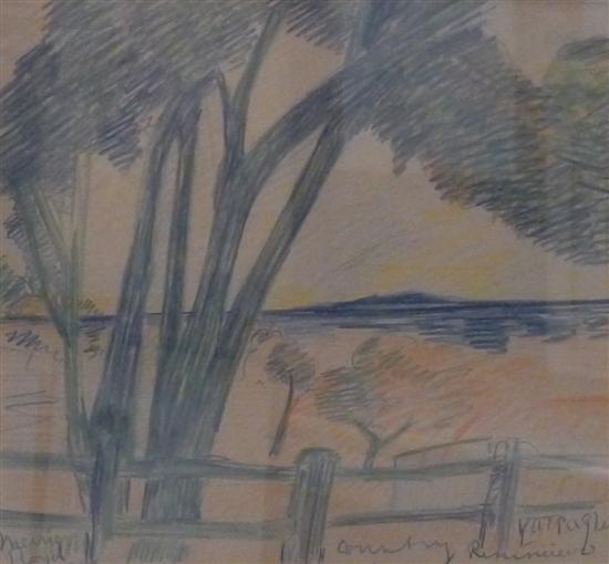 ARTHUR MERRIC BOYD SENIOR, COUNTRY REMINICENCE, YARRA GLEN, COLOURED PENCIL, 23 x 25.5cm