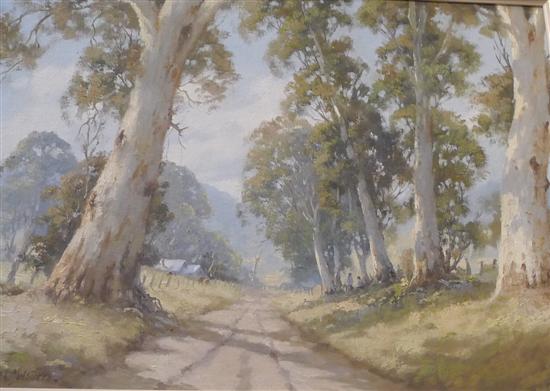 FRANK MUTSAERS, A COUNTRY ROAD, OIL ON CANVAS BOARD, 44 x 59cm
