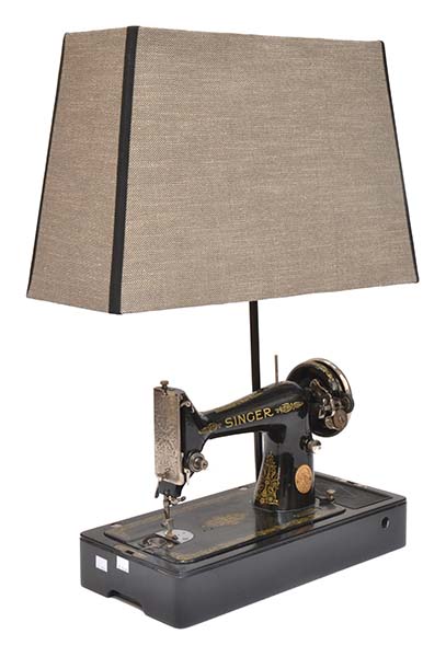 TABLE LAMP FORMED FROM A VINTAGE SINGER SEWING MACHINE, 55CM HIGH