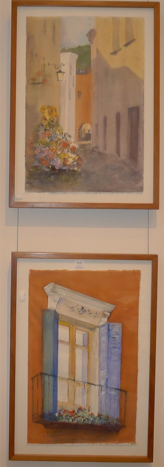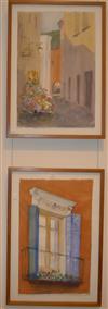 A PAIR OF WATERCOLOURS BY L. CROKER, VILLAGE STREET AND WINDOW STUDY