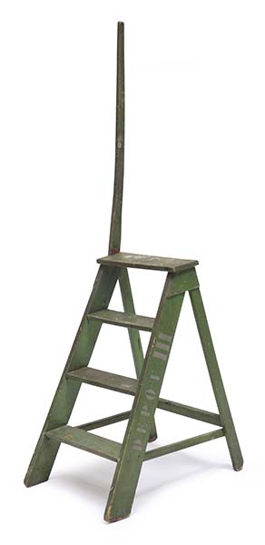 VINTAGE GREEN PAINTED WOODEN STEPLADDER WITH GUARD RAIL, 165CM HIGH