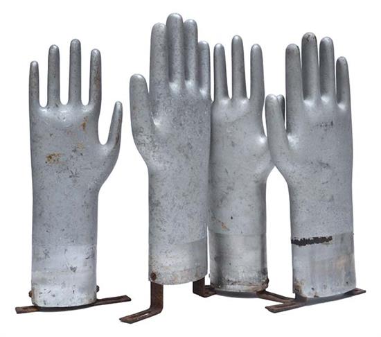 FOUR ALUMINIUM GLOVE MOULDS, ALL 33.5CM LONG