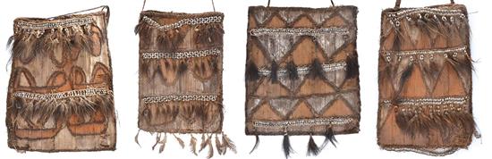 FOUR BARK HANDWOVEN AND BEADED BILUMS, IRAN JAYA (WEST PAPUA), CIRCA MID 1980S