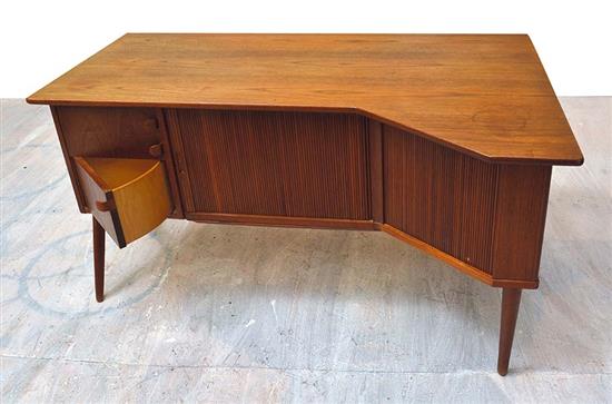 with sewing drawers, tambour doored bar to front, fitted drawers to reverse