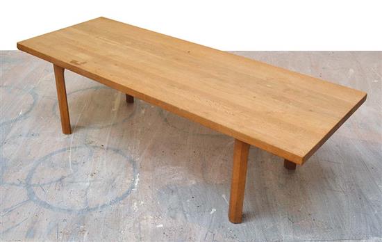 RARE GRANT FEATHERSTON TOWN HOUSE SERIES TWO SEATER SETTEE UPHOLSTERED IN BLUE FABRIC, CIRCA 1950S, BACK LENGTH 131CM