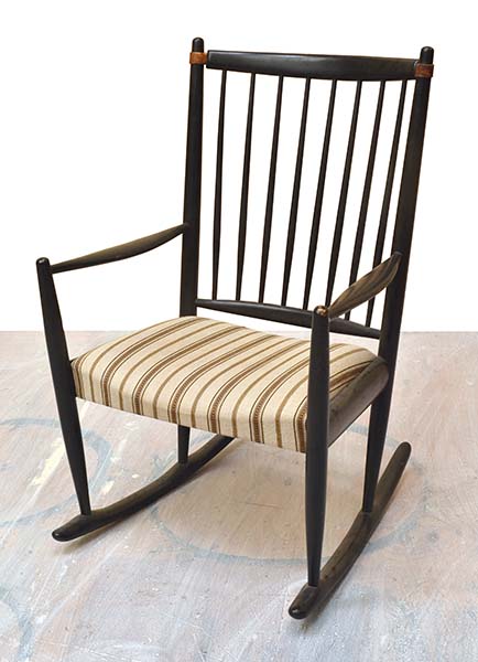 DANISH PAINTED WOODEN ROCKING CHAIR WITH UPHOLSTERED SEAT AND BACKREST