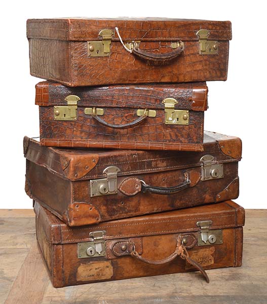 GROUP OF TWO CROCODILE AND TWO LEATHER VINTAGE TRAVEL SUITCASES, LARGEST 57CM WIDE (4)