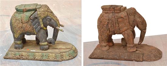 TWO INDIAN CARVED TIMBER ELEPHANTS ON BASES, LARGEST 80CM LONG INCLUDING BASE