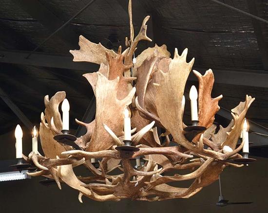 FALLOW DEER HORN CEILING CHANDELIER, 91CM HIGH, APPROX 125CM DIAMETER