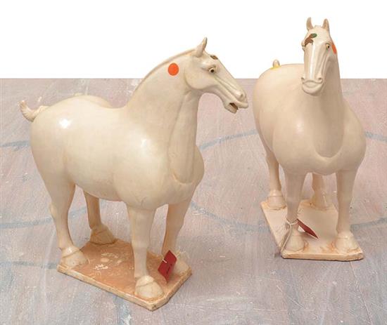 TWO CHINESE TANG STYLE WHITE GLAZED CERAMIC HORSES, BOTH 53CM WIDE (2)