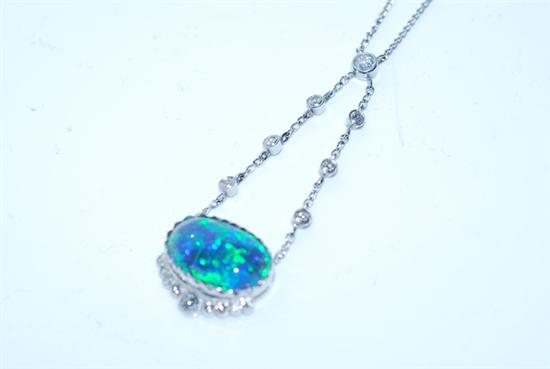 AN OPAL AND DIAMOND PENDANT/NECKLACE
