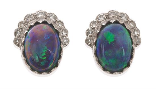 A PAIR OF OPAL AND DIAMOND EARRINGS