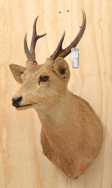 SMALL TAXIDERMIED RED DEER HEAD, 70CM HIGH