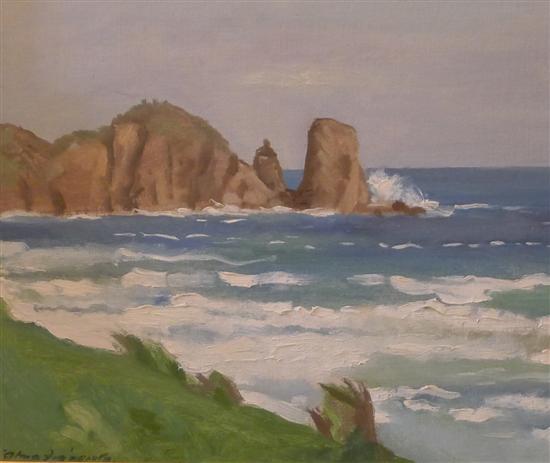 ALMA FIGUEROLA, ROCKY COAST, OIL ON CANVASBOARD, 36 X 43CM