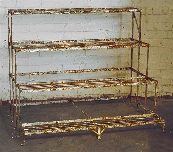 FRENCH WROUGHT IRON POT PLANT STAND, CIRCA LATE 19TH CENTURY, 102 HEIGHT X 123 WIDTH X 80CM DEPTH