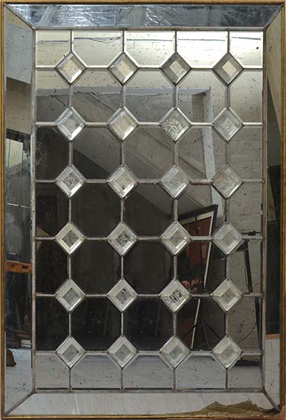 LARGE AND SEGMENTED MULTI FACETED WALL MIRROR, 142 HEIGHT X 192CM WIDTH