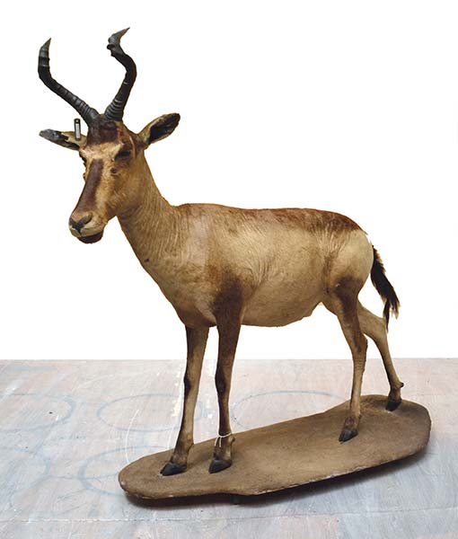 TAXIDERMIED IBEX ON MOUNTED ON WHEELED BASE, 180CM HIGH