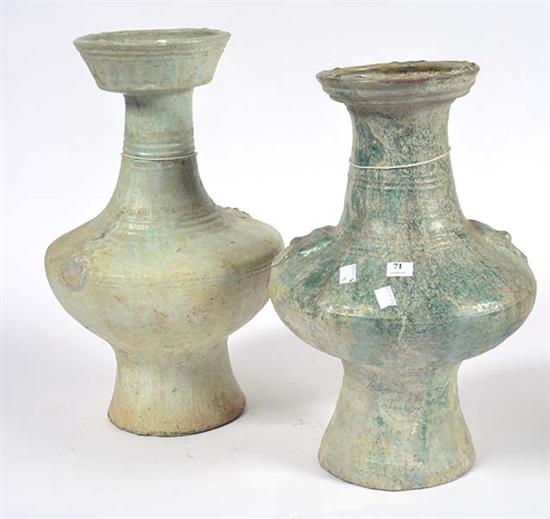 TWO HAN DYNASTY GRANARY JARS, LARGEST 42CM HIGH (2)
