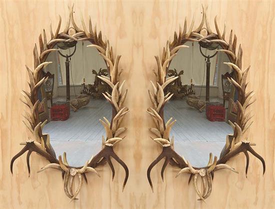 PAIR OF OVAL ANTLER FRAMED MIRRORS, APPROXIMATELY 128CM HIGH (2)