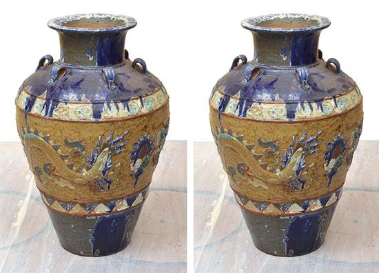 PAIR OF GLAZED FLOOR JARS DECORATED WITH CHINESE DRAGONS, 85CM HEIGHT