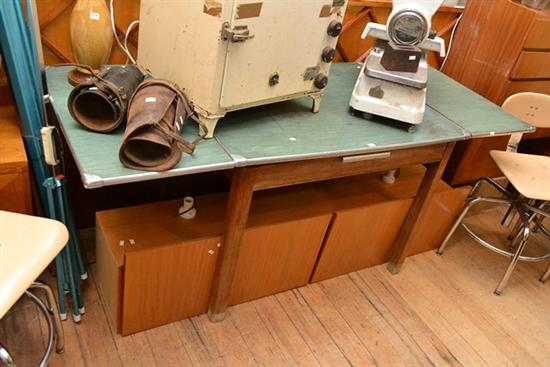 OAK FRAMED INDUSTRIAL EXTENSION TABLE WITH ALUMINIUM EDGING AND GREEN TOP, 75 HEIGHT X 100 WIDTH X 70CM DEPTH