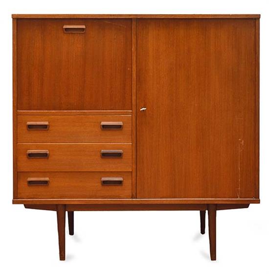 DANISH TEAK COCKTAIL CABINET, 113 HEIGHT X 110 WIDTH X 45CM DEEP