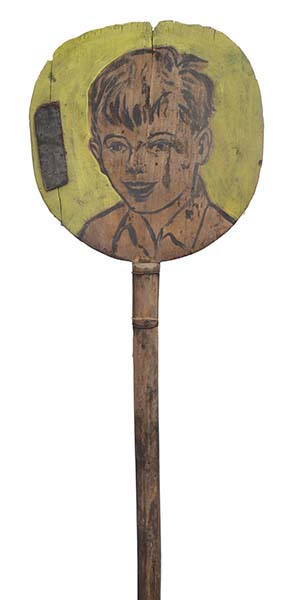WOODEN BAKER'S PEEL WITH PAINTING OF A BOY BY DAVID BROMLEY, 211CM HIGH