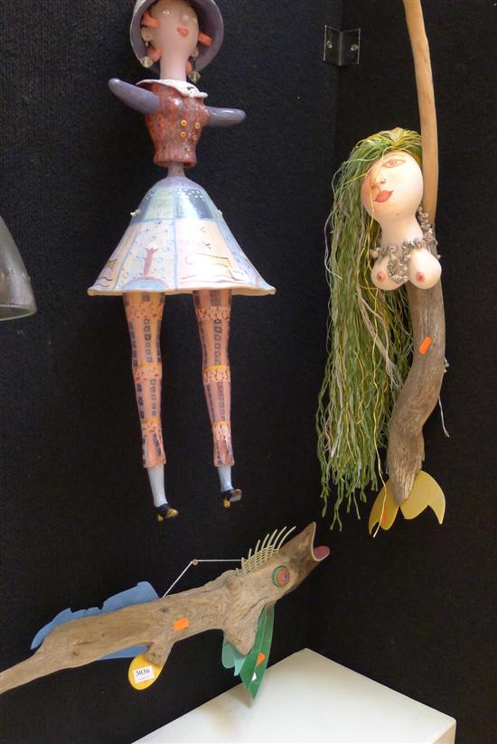 TWO RECYCLED MATERIALS SCULPTURES OF A MERMAID AND A FISH