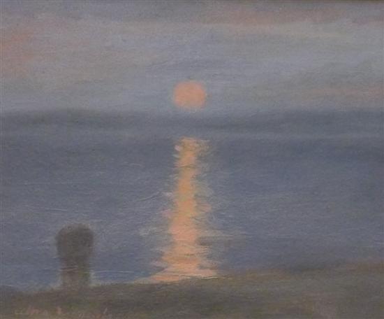 ALMA FIGUEROLA, EVENING SCENE, OIL ON BOARD, 23 X 29CM
