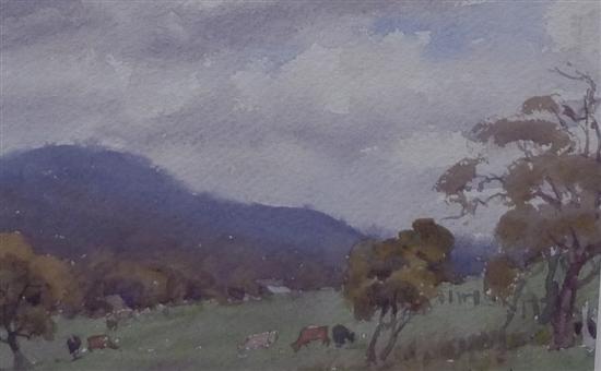 JOHN ROWELL, LANDSCAPE WITH CATTLE, WATERCOLOUR, 14 X 21CM