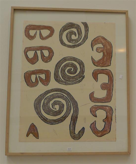 PETER WALSH, ASMAT SHIELD DRAWINGS, PENCIL AND PASTEL, 1993, RAY HUGHS GALLERY LABEL AFFIXED VERSO