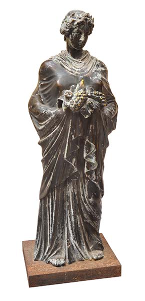 SPELTER ALLEGORICAL FIGURE MODELLED AS A HARVEST GODDESS, 168CM HIGH (FIGURE)