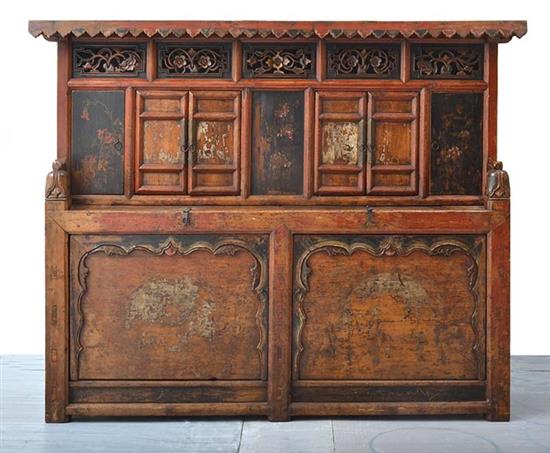 PAINTED TIBETAN RICE STORAGE CABINET, 18TH CENTURY 173 HEIGHT X 200 WIDTH X 77CM DEPTH