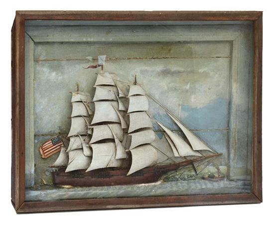SHIP DIORAMA IN GLASS CASE, 45 HEIGHT X 61 WIDTH X 8CM DEPTH