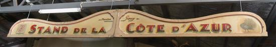 FRENCH TWO-PIECE VINTAGE PAINTED WOODEN CARNIVAL SIGN 'STAND COTE D'AZUR, APPROXIMATELY 580CM LENGTH