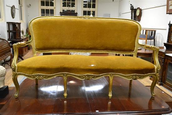 GILTWOOD CANAPE UPHOLSTERED IN GOLD VELOUR, 155CM BACK LENGTH